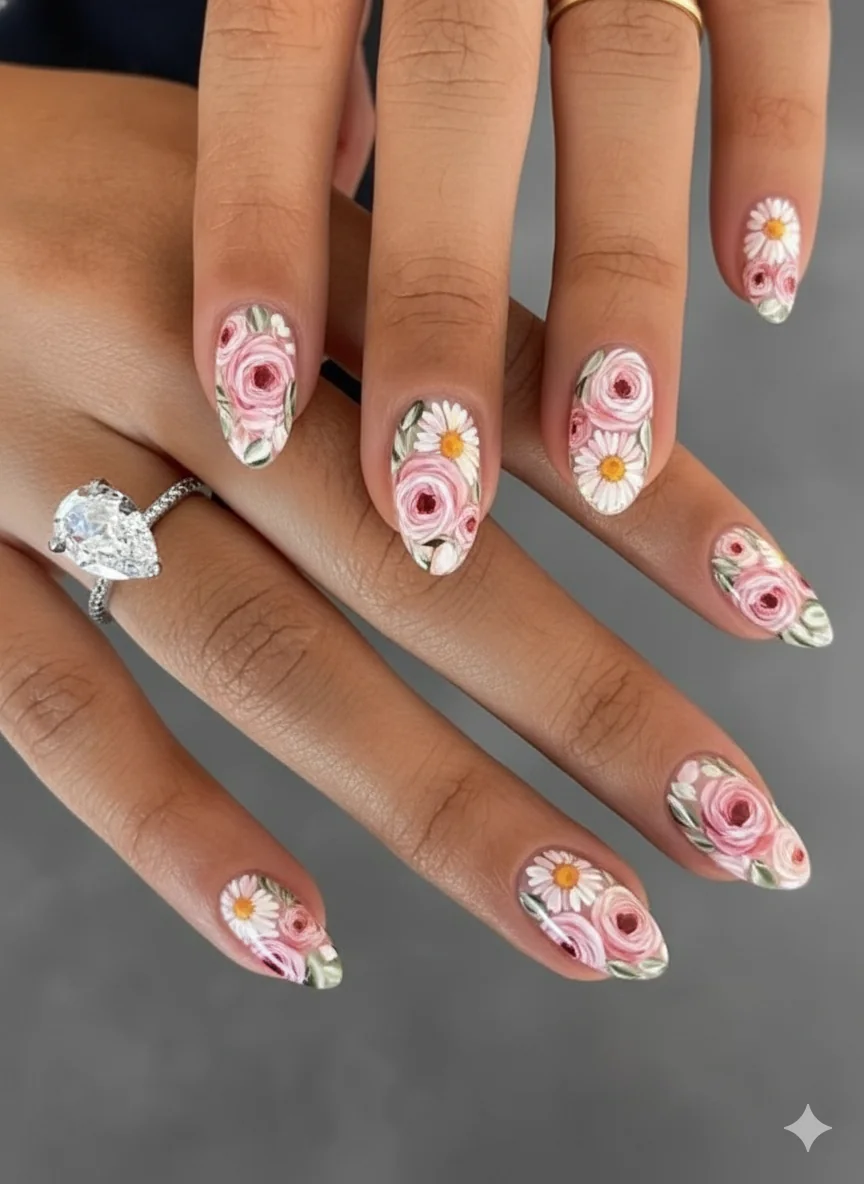 The botanical nail has grown up. Single hand-painted blooms on a neutral base, spare and illustrative, or 3D sculpted gel florals with raised petals that catch light at the tip. Both are strong mothers day nail ideas. The first suits anyone who wants something meaningful without fuss. The second is for the mum who wants her nails to be the conversation. We have dedicated an entire guide to floral Mothers Day nails if you want to go deeper on this category.