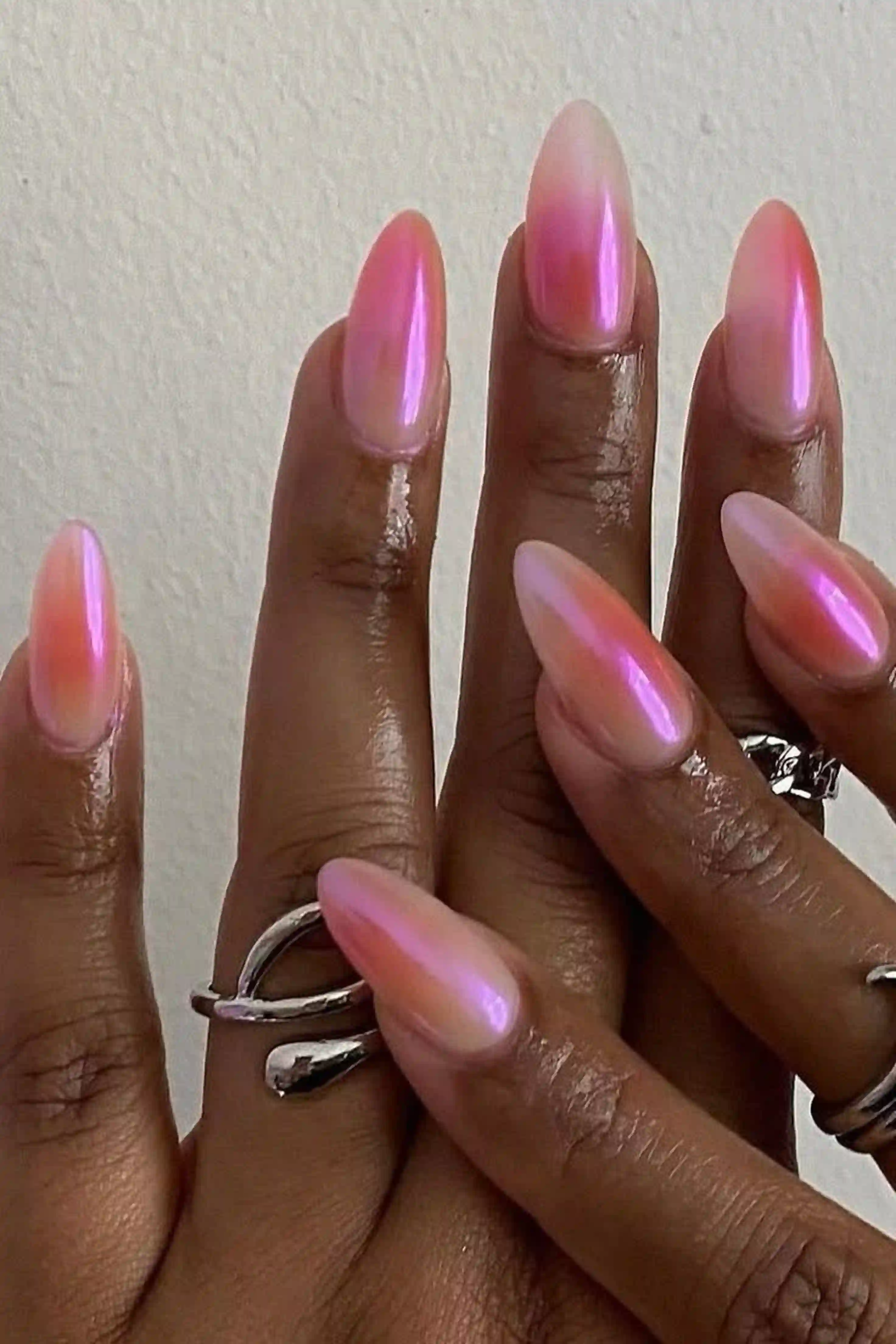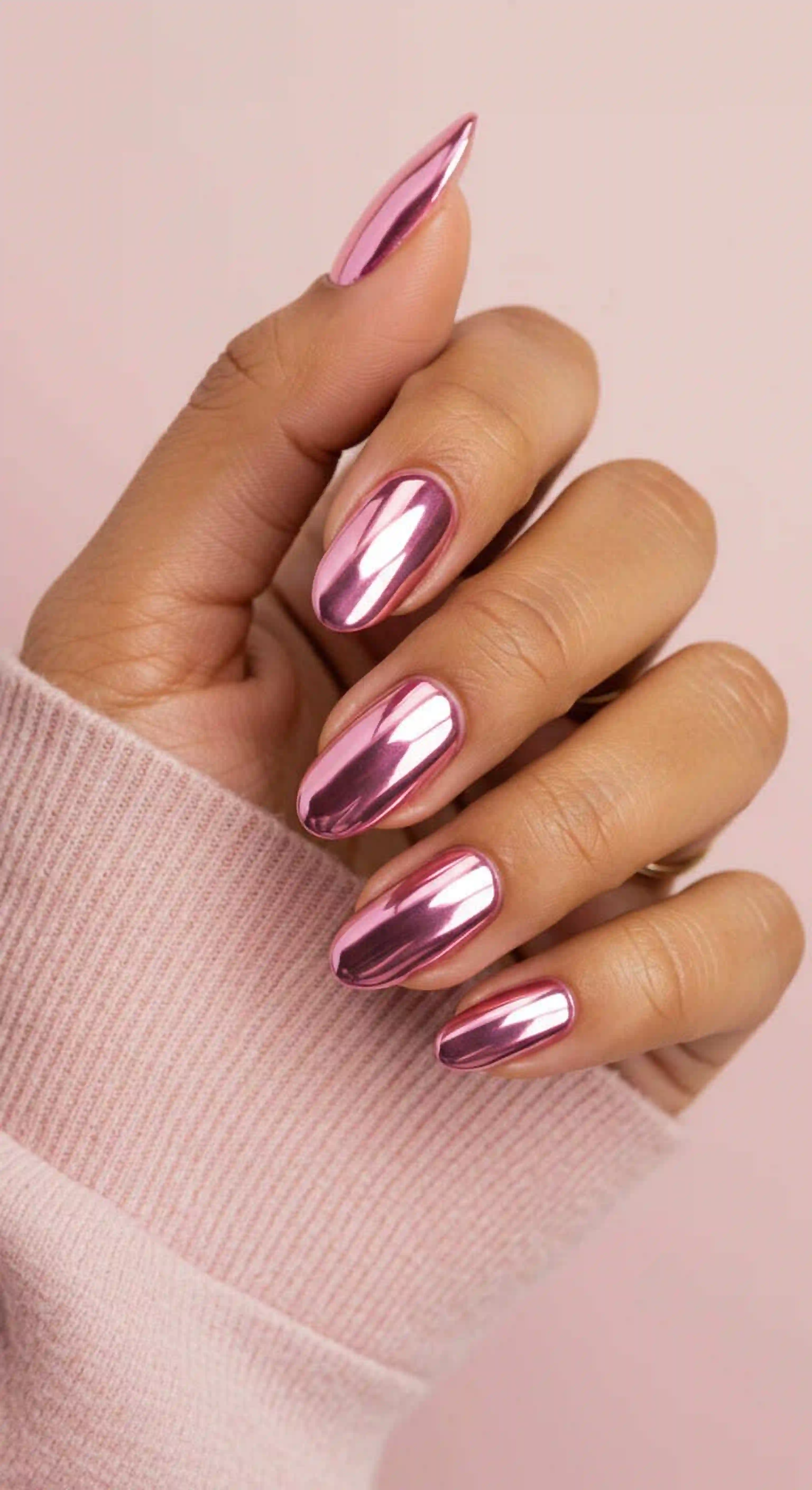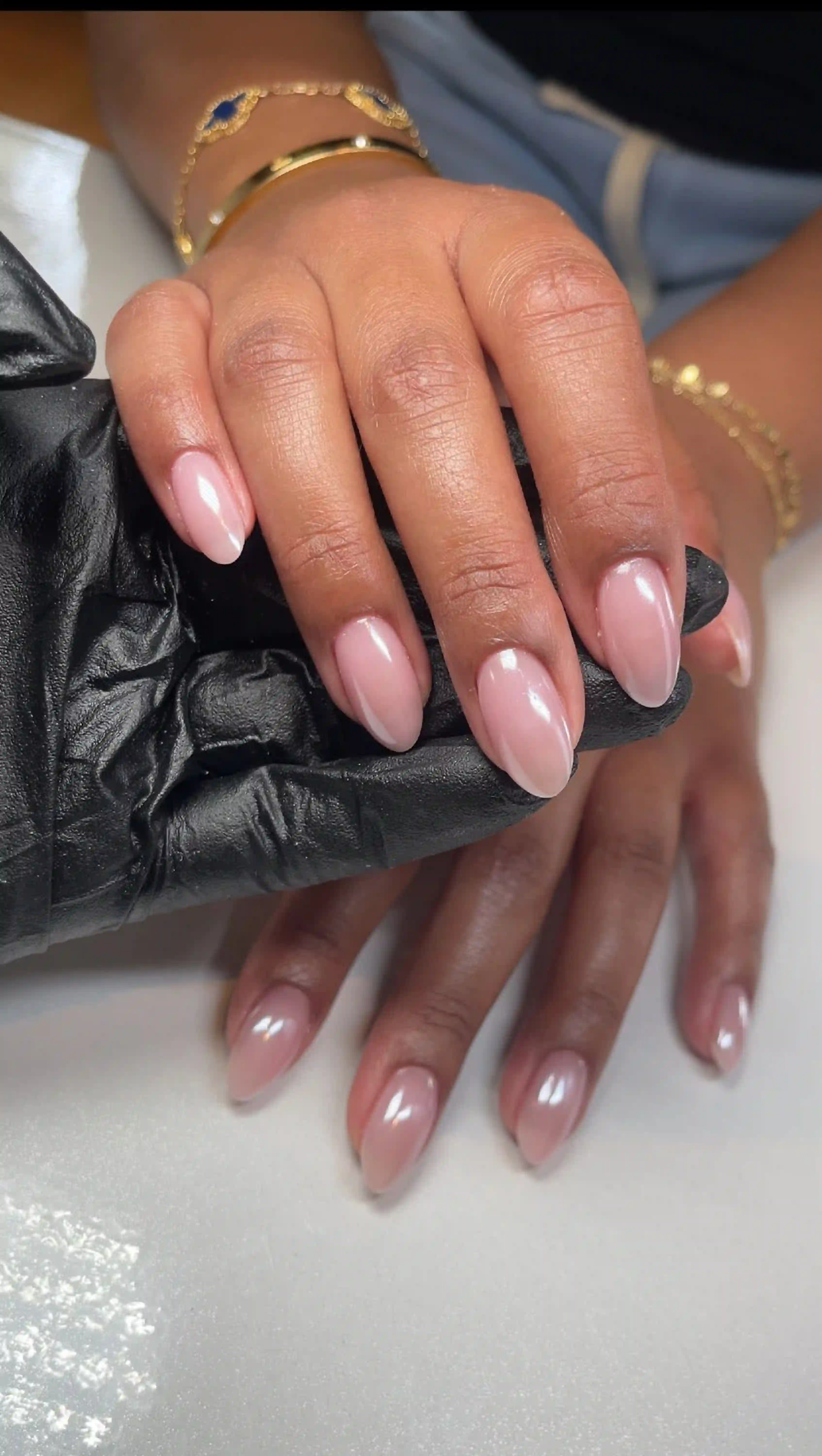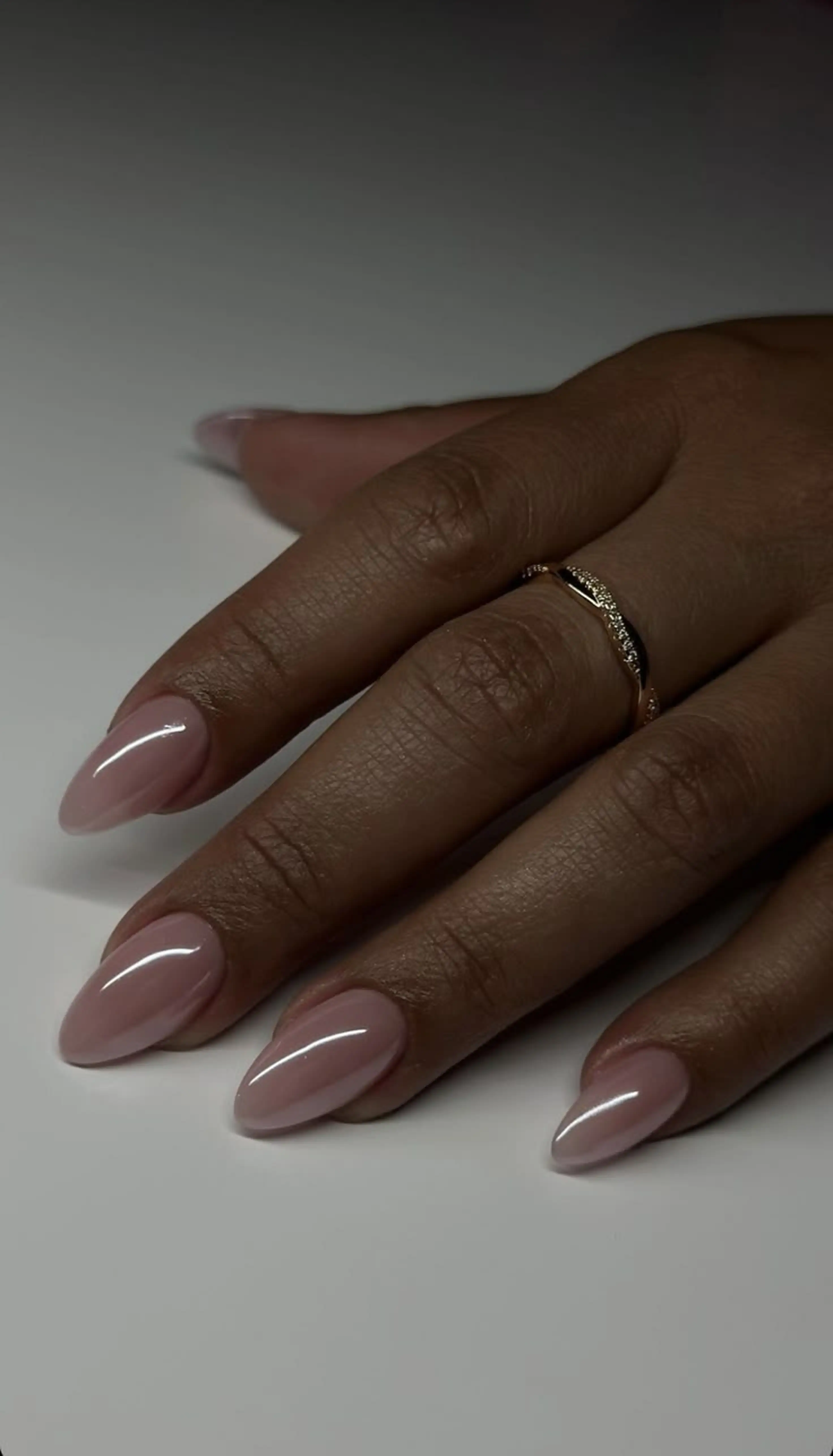 Classic almond shaped nails trending 2026 with soft tapered tips perfect for chrome, aura effects and quiet luxury aesthetic