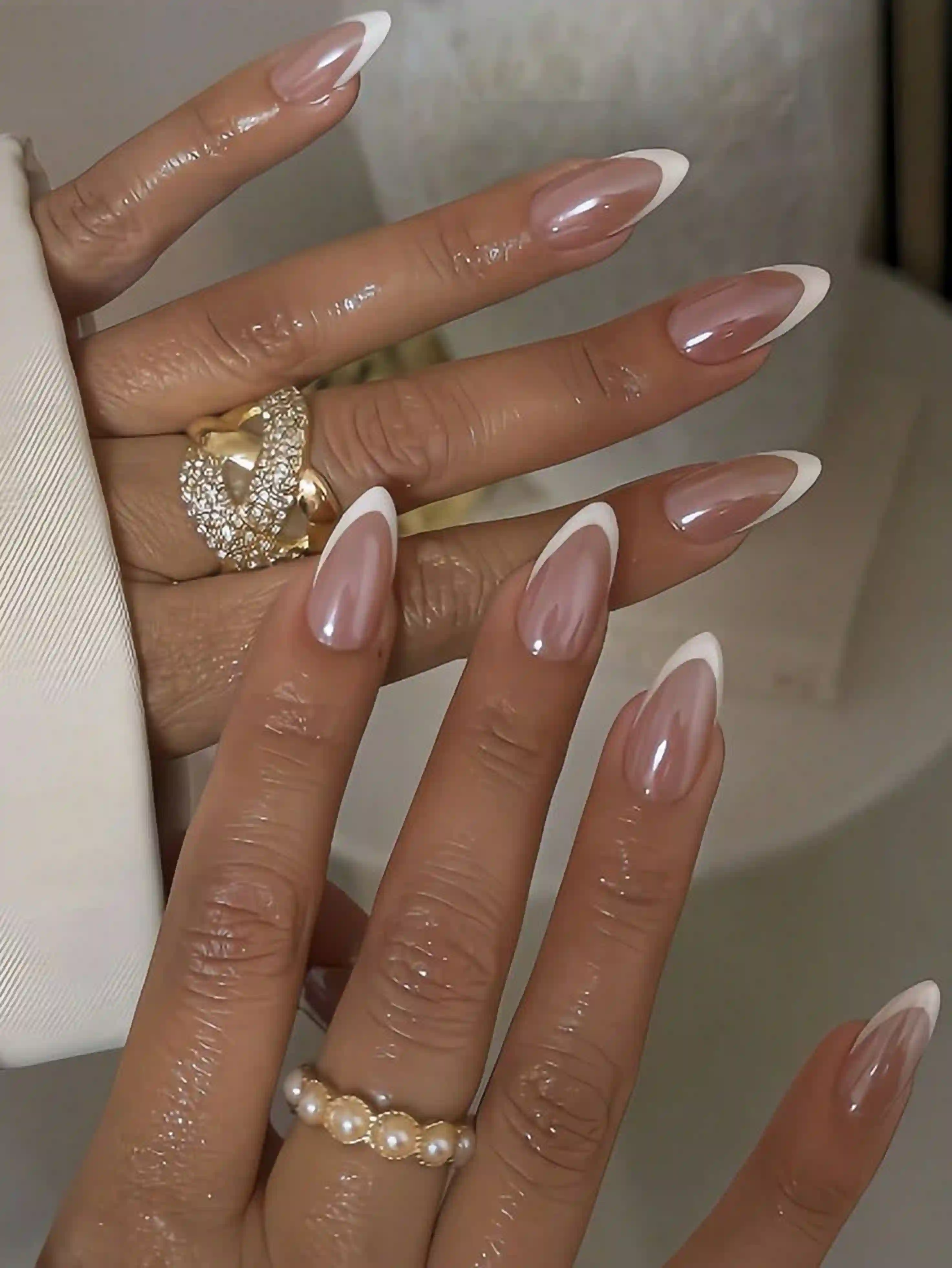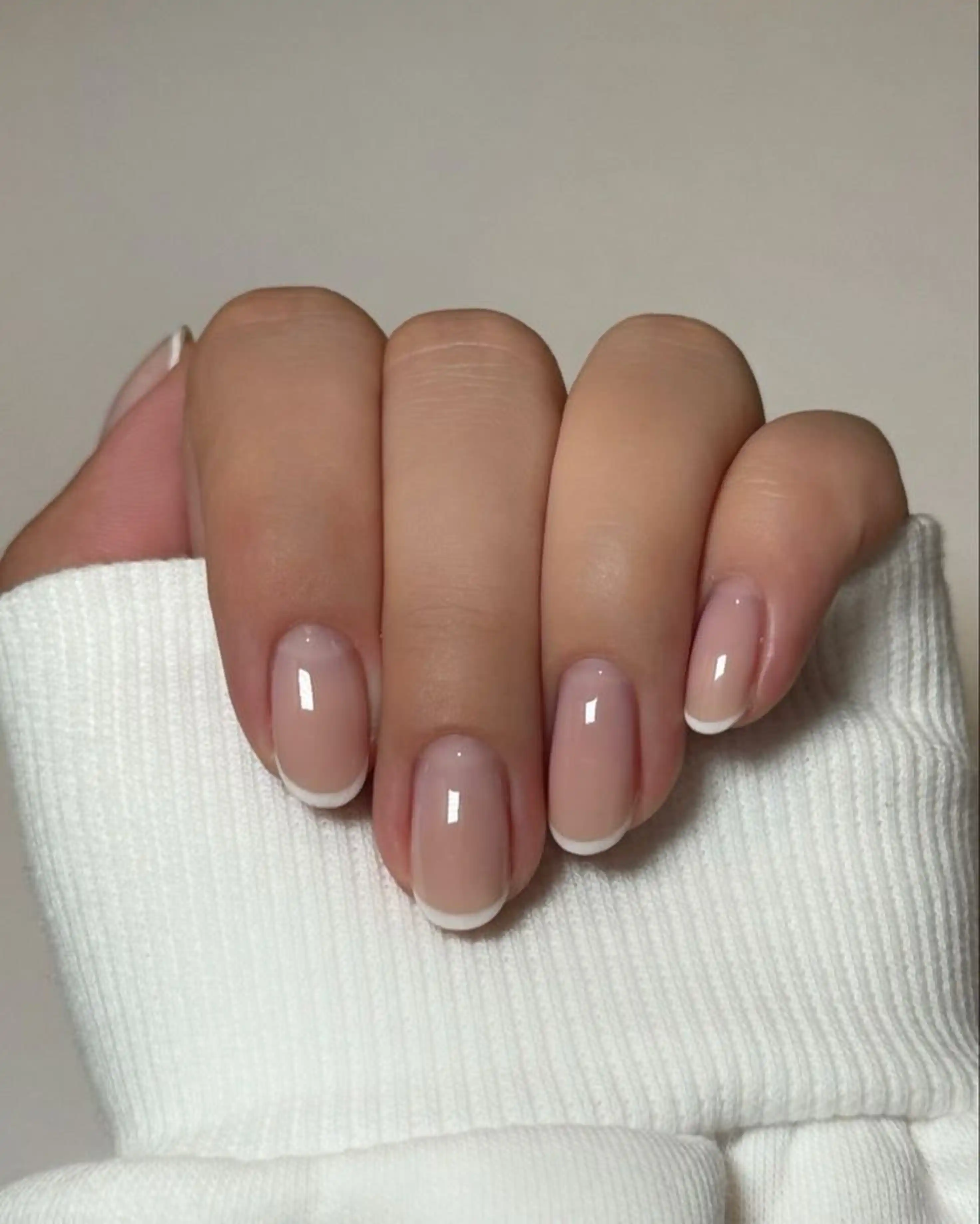 Modern French tip nails 2026 with micro whisper-thin lines, colored tips and asymmetrical designs trending quiet luxury aesthetic