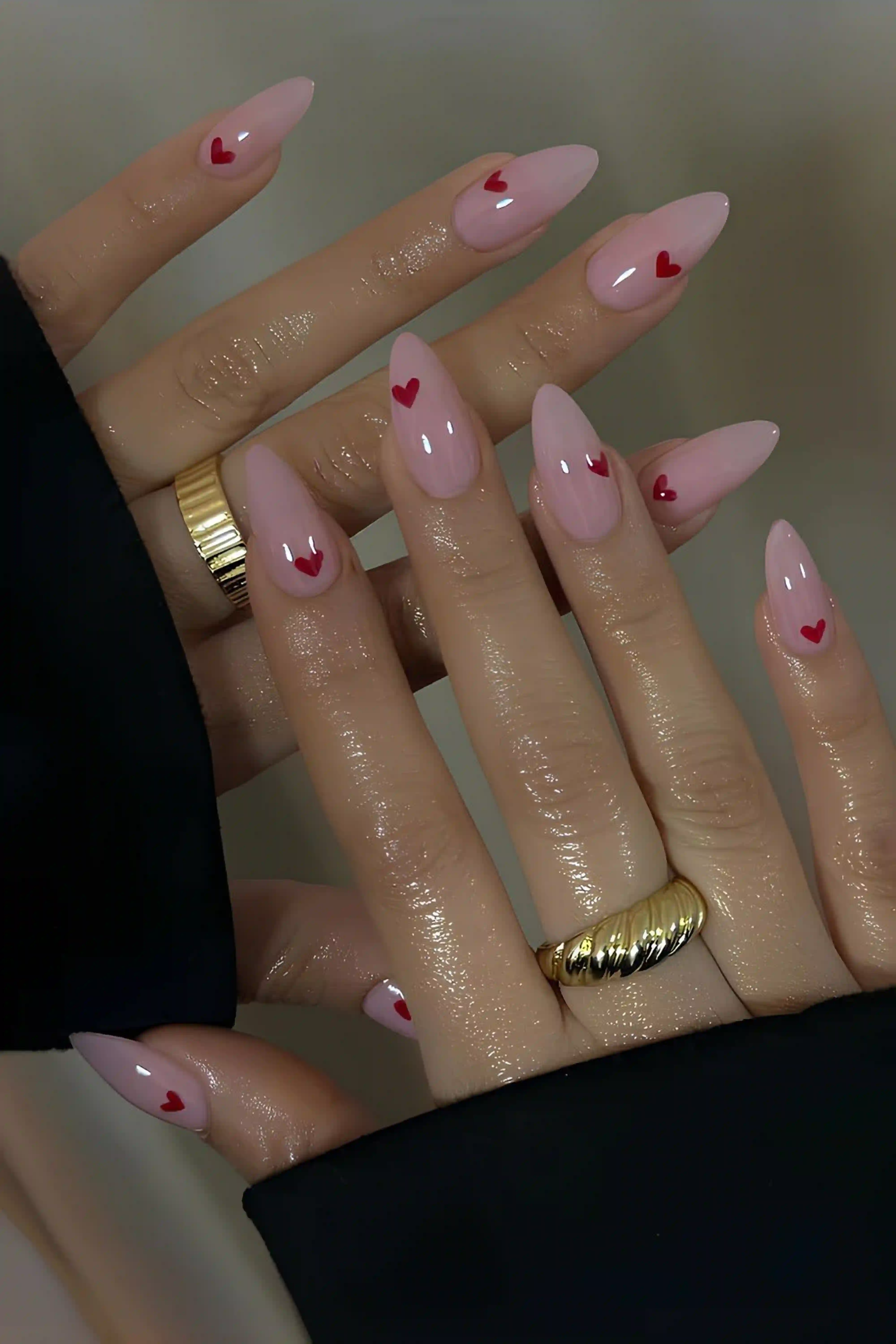 Blush pink hearts soft romantic valentine nails creating feminine delicate elegant manicure love