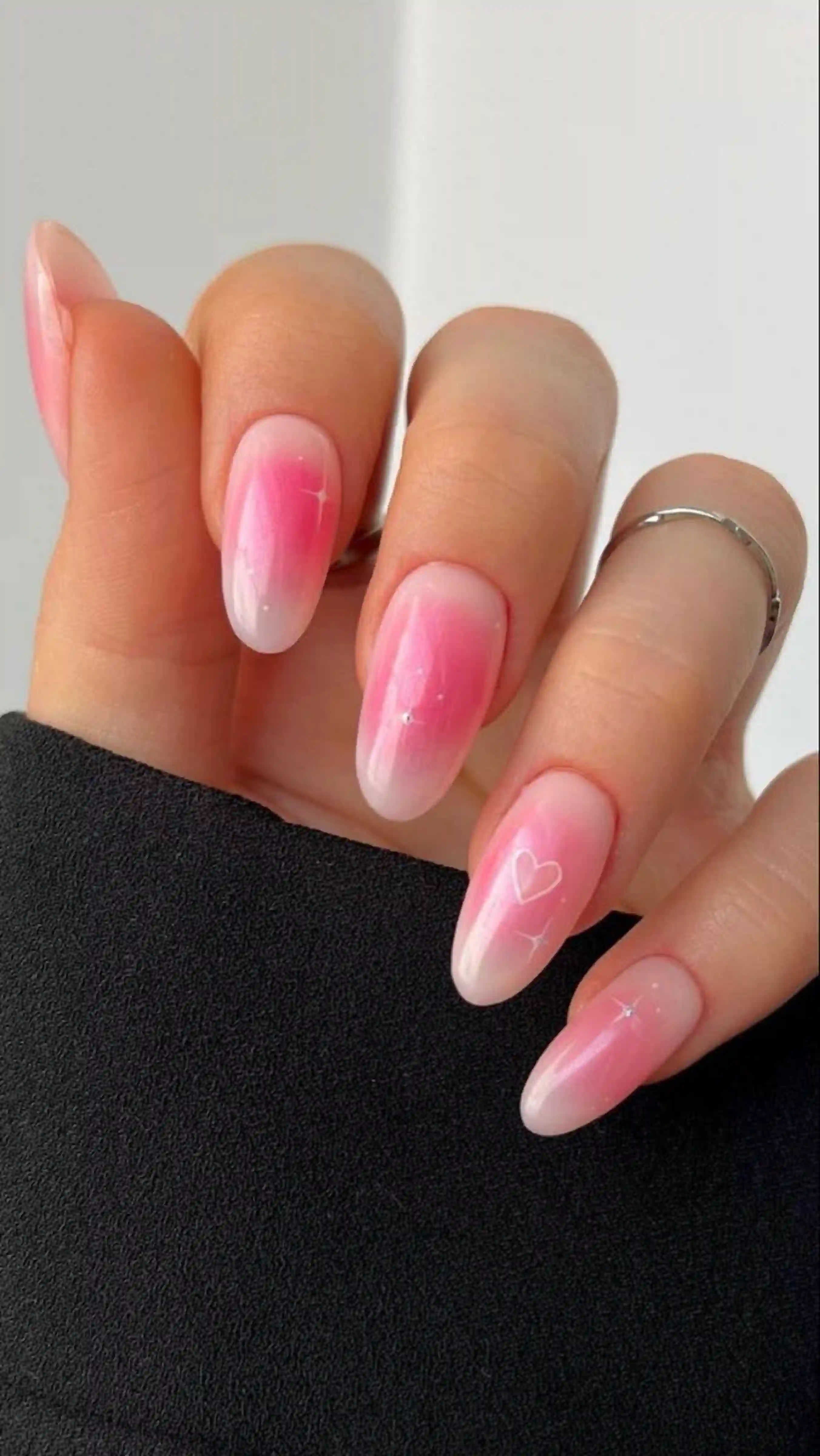 Pink aura hearts gradient with halo romantic nails creating trendy dimensional manicure for valentine day